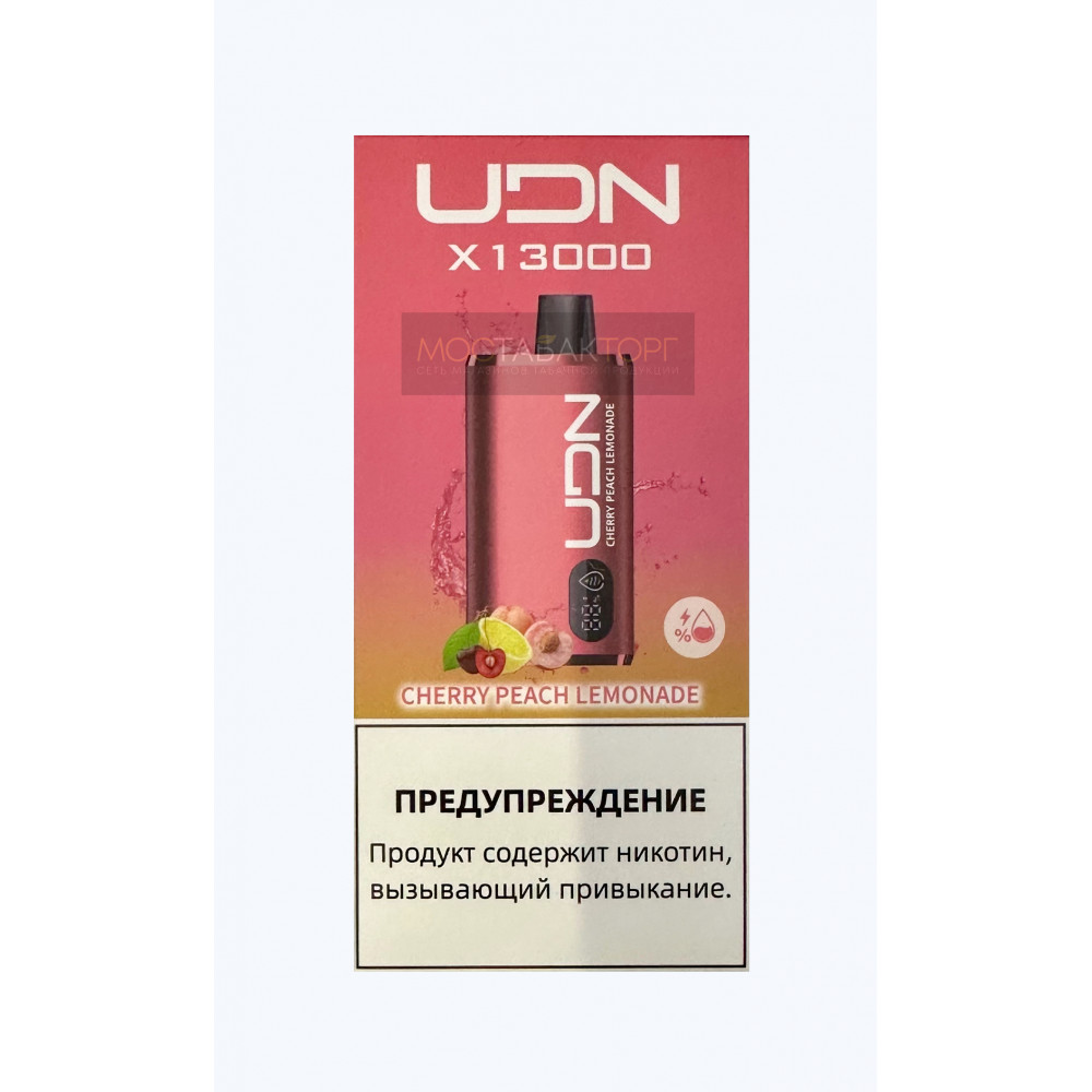 | UDN видыBar X 13000 | UDN вкусыВишневый Персиковый лимонад | UDN количество в блоке10 шт |